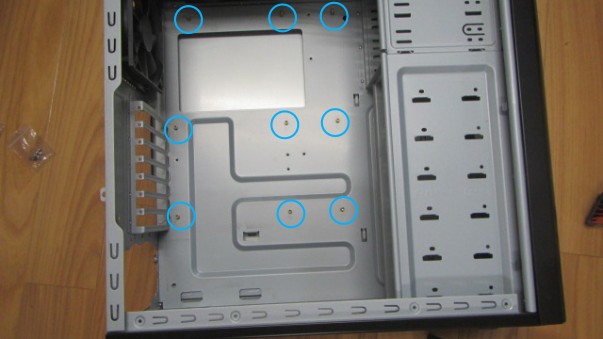 ケースにつけたマザーボード固定用のスタットと合わせてください
