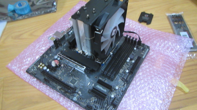 • クーラーをつけるときにはCPUグリスをクーラーとCPUの間に塗るのですが、このグリスが緩いものがあって、つけすぎるとCPUとマザーボードの間に垂れてしまい、通電不良なのか端子間のショートなのかはわかりませんが、組み立てた後も起動しないってことが起こるので注意してつけてください。意外と重要です。垂らしてしまったら、拭き取らずにパーツクリーナーなどの揮発性溶剤で洗い流してください