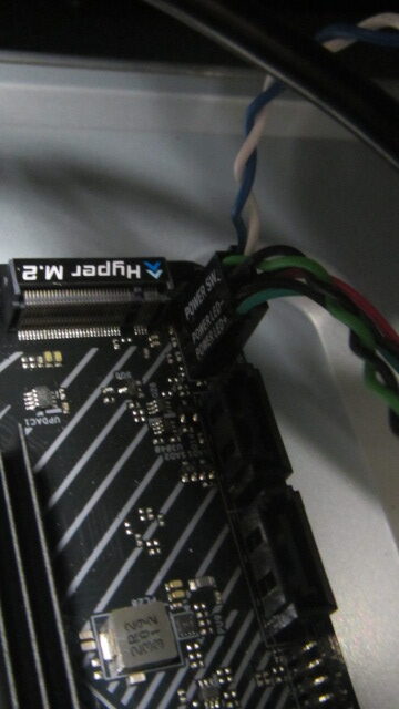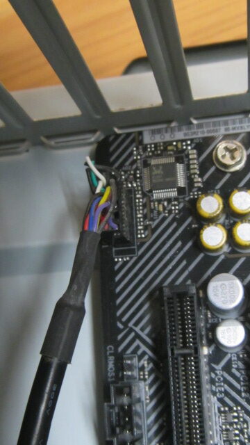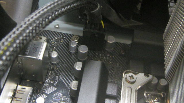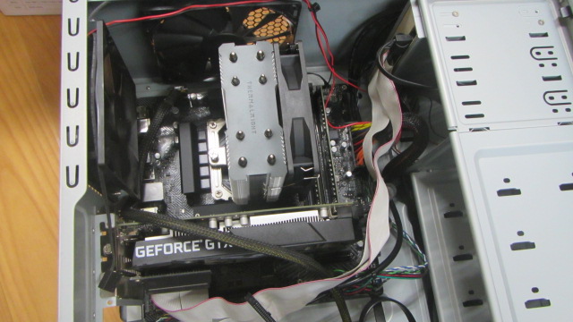 この中古でゲットしたケースの蓋にもファンがついていて、配線があまり長くなく、ふたを閉めるときに、ボードのケースファン端子に挿すのが大変でした