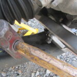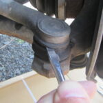 **【手順2】**では、セパレーターだけで外そうとせず、ハンマーでアームをたたいて外すのがコツ。ボールジョイントのボルトを曲げたり潰したりしないように注意が必要です。
