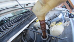 - 運転席と助手席の間にある、出っ張った部分ここにエンジンが入っていて、これを外します。