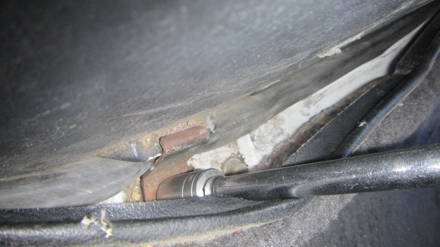 - 助手席側、運転席側、2か所ずつフロアーに抑える金具がついていて、この金具のボルトを13mmのレンチで緩めます