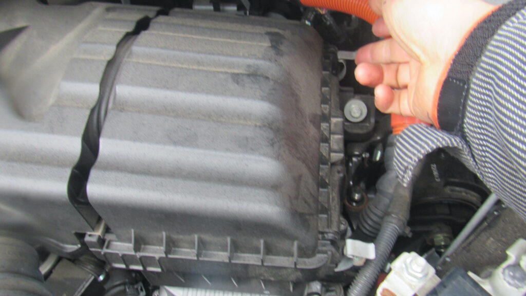 - 写真中央のオレンジのチューブの右側がエアフィルターの入っている箱