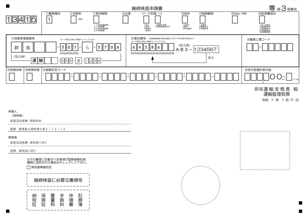 *あるほうがこのましいですが、無くても検査を受けれて車検にはパスできます。 - 継続検査申請書(専用3号様式)