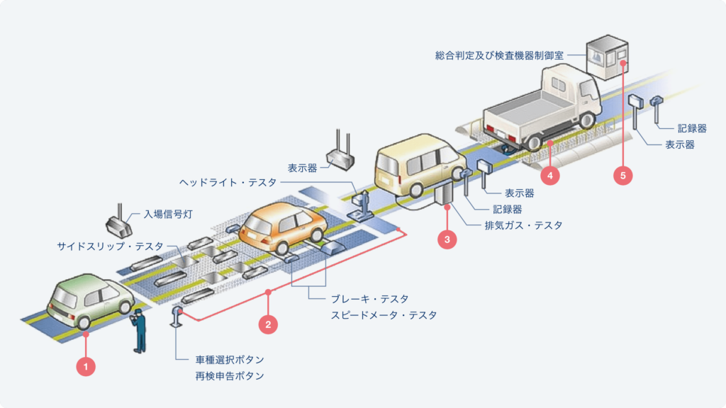 - 大体写真のような感じになってますが、排ガス検査が一番初めになるところもあります。