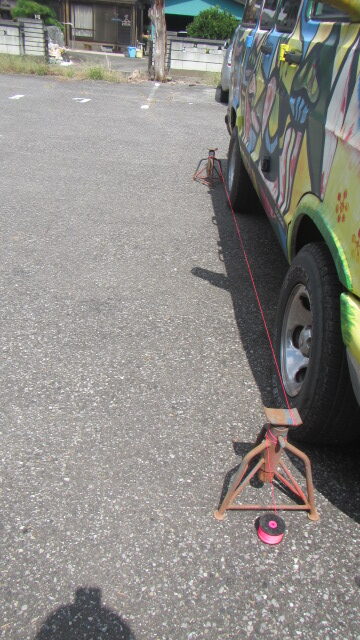 • 車両の横に車両と並行な線を水糸とジャッキスタンドで作ります。