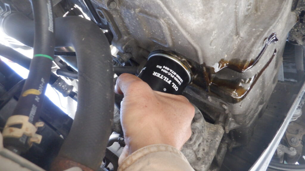 • はずすとオイルがドボドボ溢れてきますので、オイル受けでしっかり受けてください
