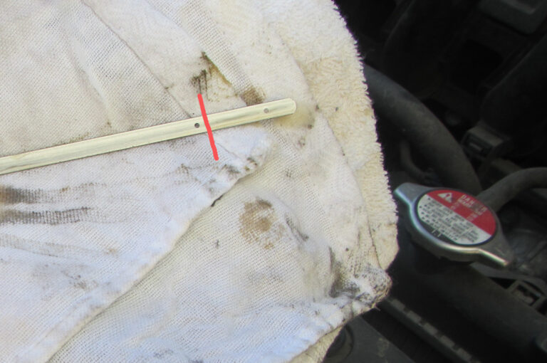 画像3枚めではわかりにくと思いますが、赤の線のところまで来ています。丸い穴が二つ空いていますがこの間にあれば正常で、これより下だと足りないので、足してください。
