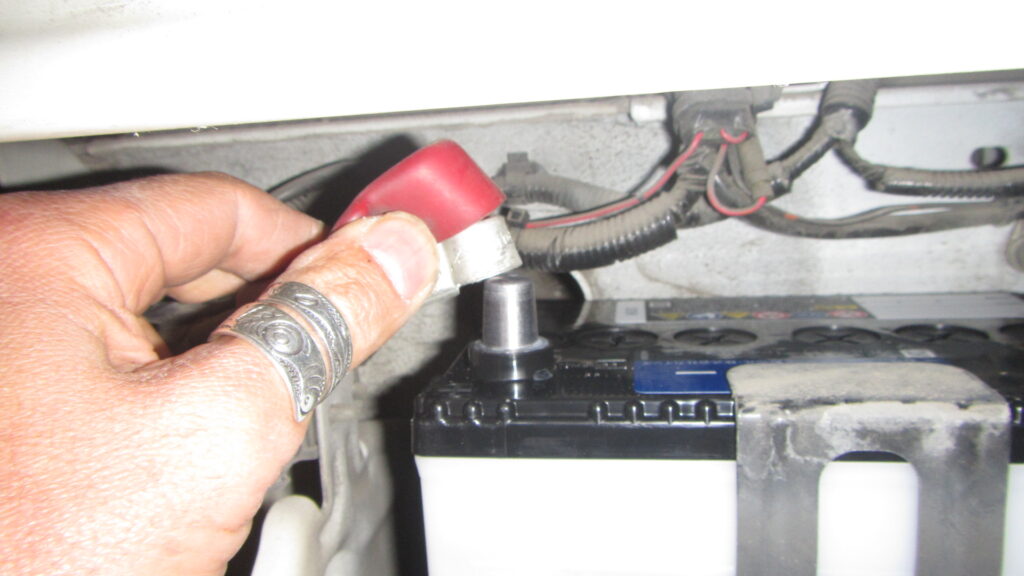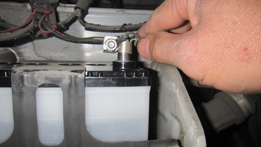 (必ずマイナス端子から外してください。プラス端子から外すとビリビリの可能性があります)