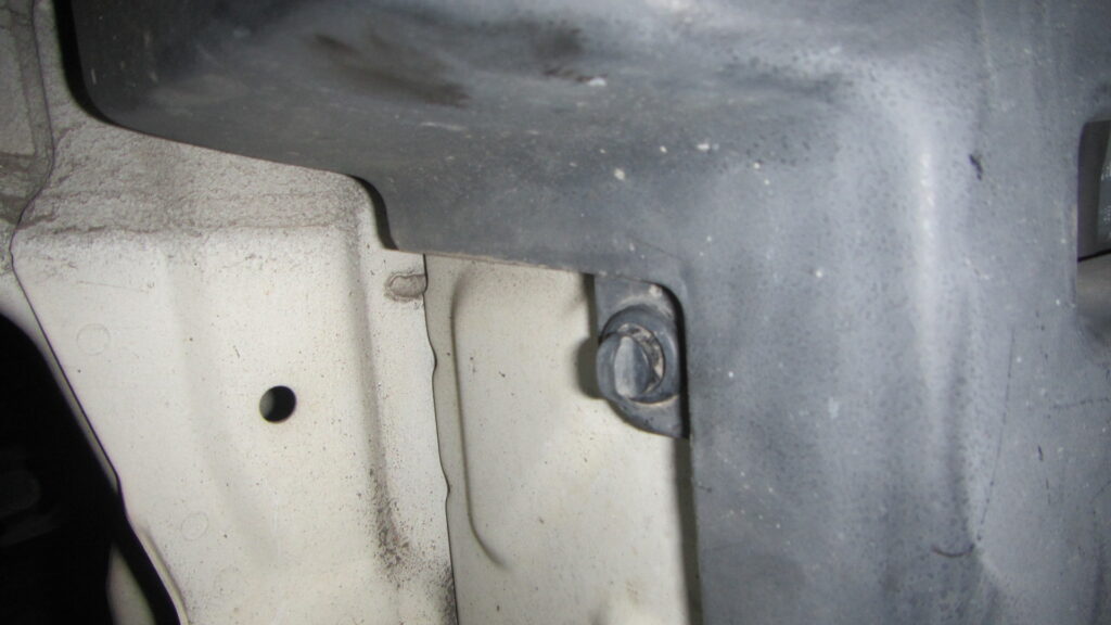 - カバーを止めている左右のプッシュピンを引っ張って外します