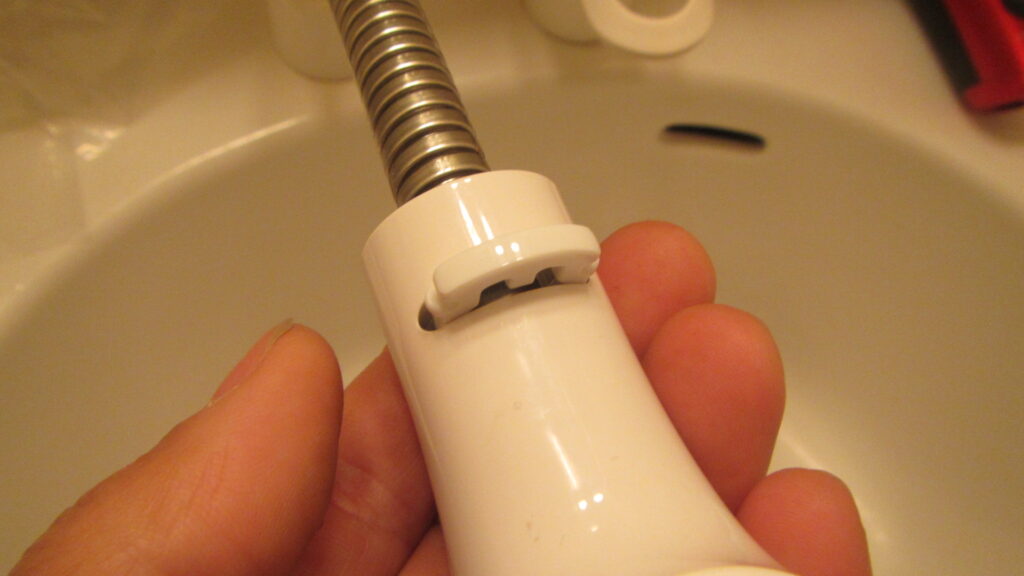 - 新しいシャワーヘッドを取り付け、手順1で外したものと同じ部品をはめ込みます