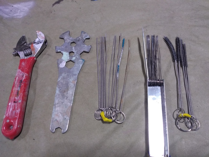 - ニードル、エアキャップ、スプレーオリフィス、ペイントカップ等を取り外し塗料で使ったシンナーで洗います。