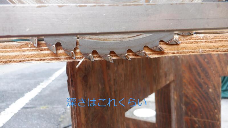 余計なものを切らないように材料の厚み+1、2ミリくらいがちょうどよいと思います。 - 角度を設定します。(斜めに切りたい場合)