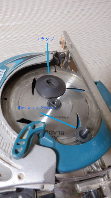 この165の丸鋸は10mmレンチで緩みます - 三枚写真 ボルトを外すと鋸刃を抑えているフランジが外れます