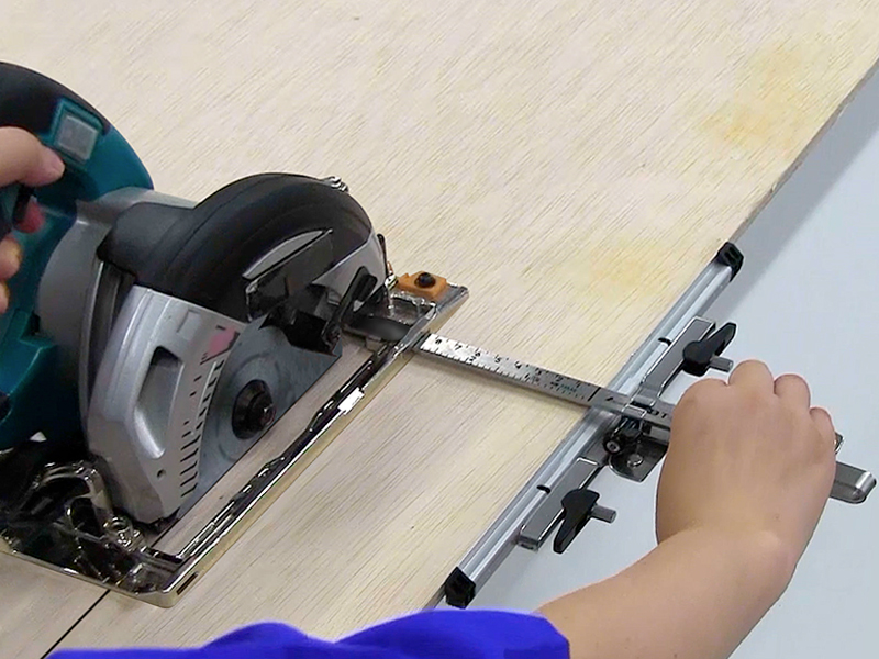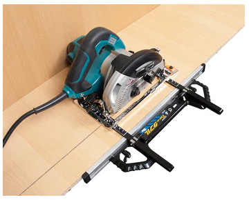 丸鋸でまっすぐ切るのはなかなか難しいので便利な補助具も販売されています。
