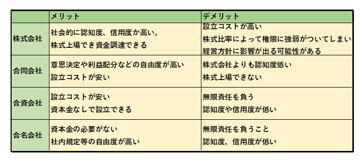 今は資本金1円でも法人登記ができるので合資会社、合名会社を選ぶメリットはなさそうです。