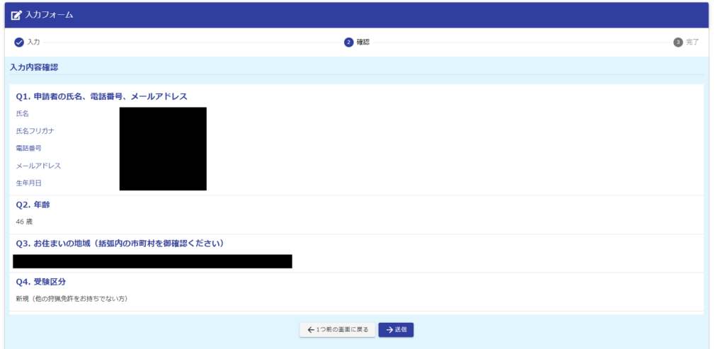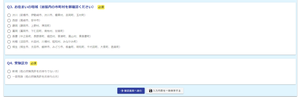 手順3 第1種銃猟・第2種銃猟 狩猟免許試験仮申し込み